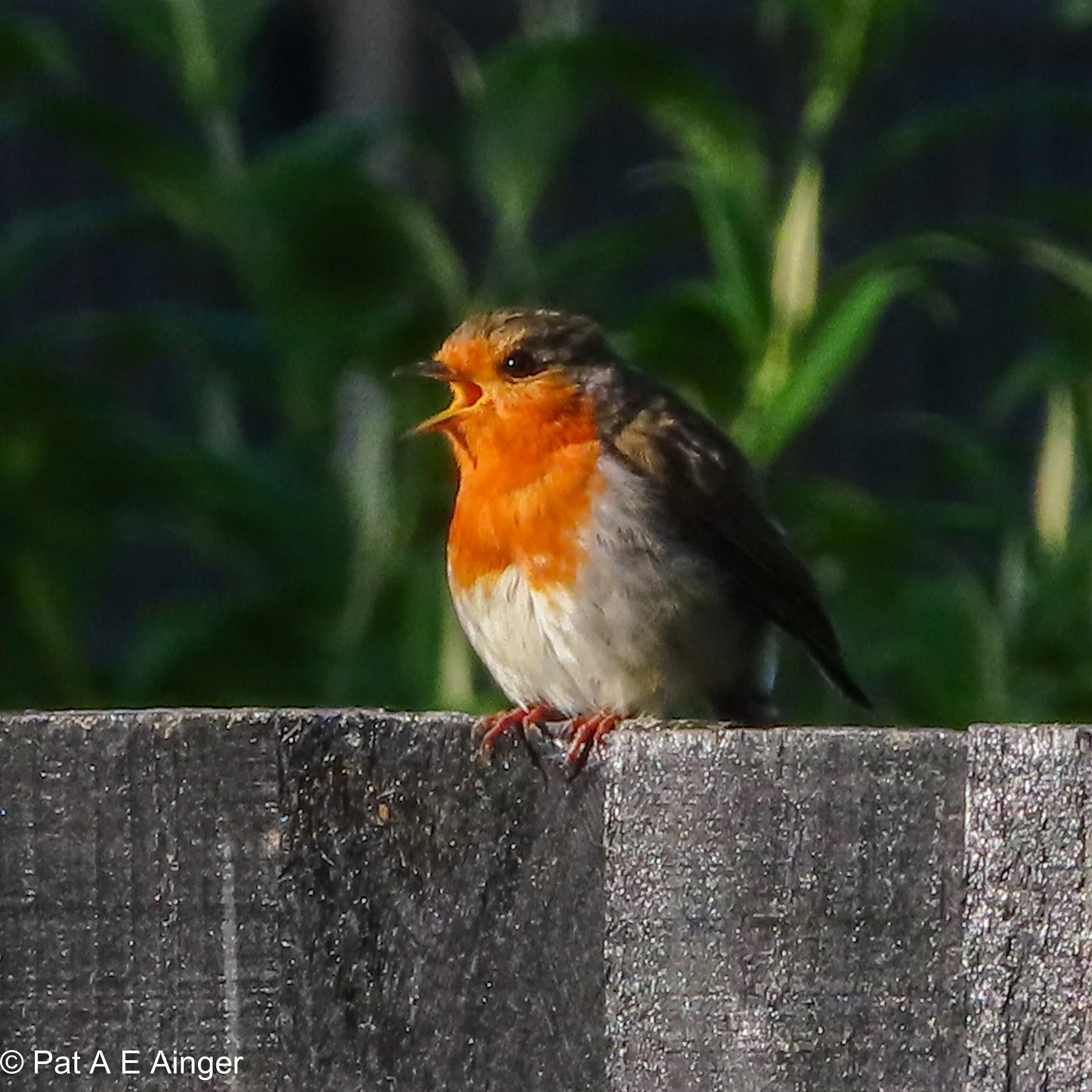 The robin was freely sitting and singing on the fence of one of the back roads here in Great Bromley, Essex. I took a chance and as I have the little camera set on continuous settings, I aimed and took several shots. I edited it in Lightroom and this image had the robin with its beak open - perfect.